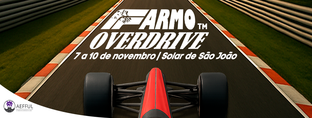 O Departamento Cultural e Acadécimo (DCA) abre o teu ano com mais uma farmo que não vais querer perder. Aquece o motor porque de 7 a 10 de novembro voltamos à pista habitual para a Farmo Overdrive! Vais querer ficar para trás?