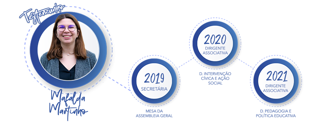 Comecei o meu percurso associativo em 2019, quando, ainda verdinha, me desafiaram a ser secretária da MAG. Embora fosse, por vezes, uma função um quanto ou pouco ingrata, deu-me a conhecer o mundo do associativismo. Ganhei um carinho especial pelo mesmo, o chamado bichinho, e desejei continuar a fazer parte da história da AEFFUL. Em 2020, também devido à inesperada pandemia que travou muitos planos e objetivos, vivi um dos anos mais desafiantes enquanto dirigente associativa. Abracei o DICAS, o departamento do meu coração, e fui desafiada como nunca tinha sido. Empenhei-me pela valorização cívica do farmacêutico, não só como profissional de saúde, mas sobretudo como cidadão, também ele responsável pela sociedade onde vive, responsável pelo outro com quem se cruza. A cereja no topo do bolo, para finalizar o meu percurso associativo, foi ser dirigente do DPPE. Um outro grande desafio que me fez sair da minha zona de conforto. Trabalhei com uma equipa incrível, representei os Estudantes e lutei pelos seus direitos e interesses.