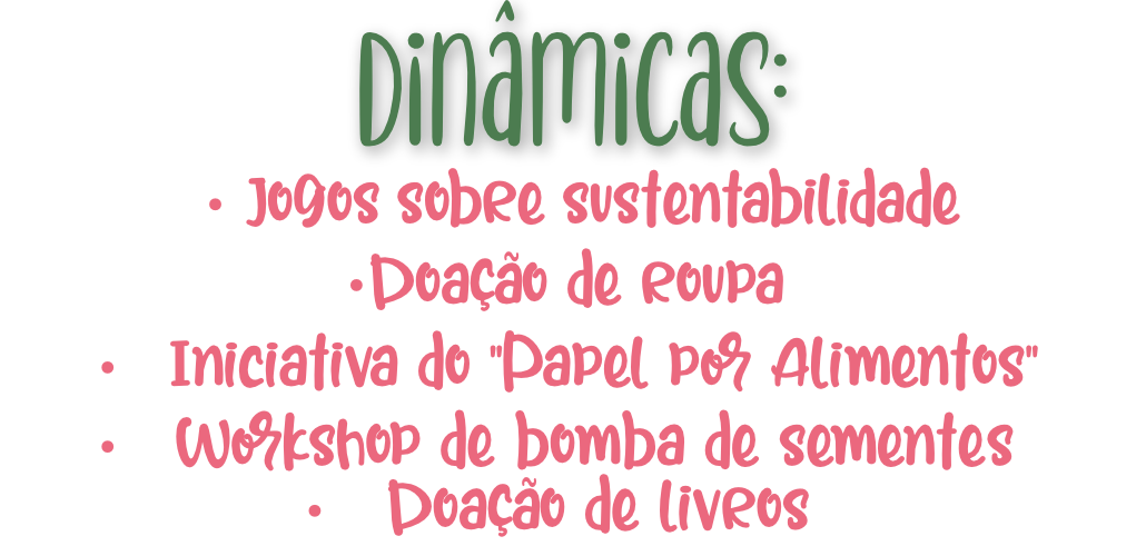 Mas não ficamos por aqui… Ao longo do evento, poderás ainda participar em várias iniciativas que promovem hábitos mais sustentáveis, como um workshop de bombas de sementes, jogos sobre sustentabilidade ou descobrir novas receitas biológicas.