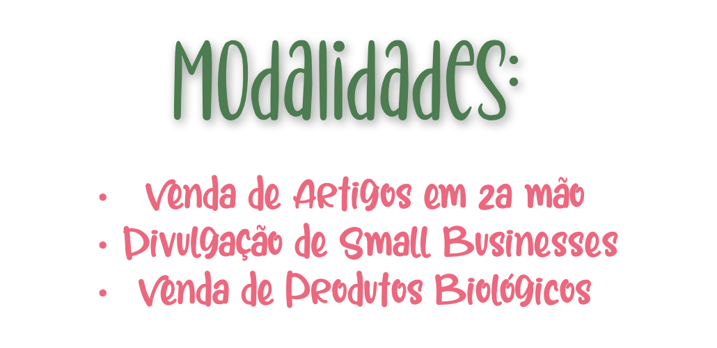 Durante estes dois dias, poderás vender artigos em 2ª mão, produtos biológicos ou divulgar o teu small business. Caso queiras participar como vendedor(a), a tua participação terá uma caução associada, que poderá ser devolvida no final do evento ou doada à Causa Solidária – Brigada do Mar.