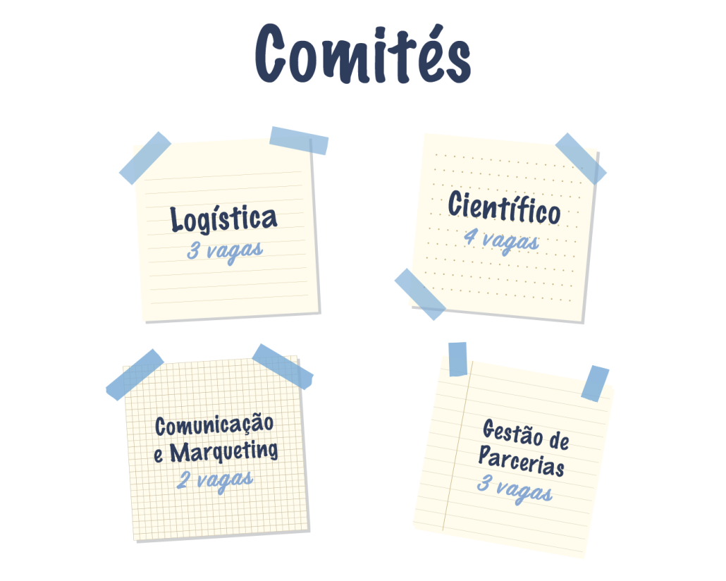 A COC é composta por quatro comités: Comité Científico, Comité de Logística, Comité de Gestão de Parcerias e Comité de Comunicação e Marketing. Se procuras uma experiência desafiante, enriquecedora e com impacto real, esta é a tua oportunidade de deixar a tua marca.