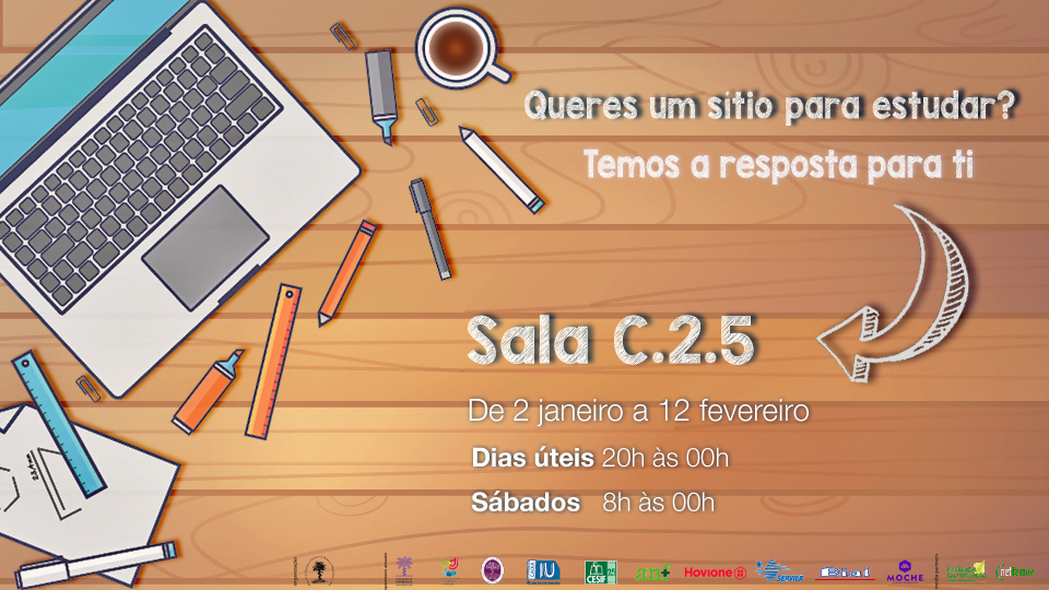 A sala C.2.5 encontrar-se-á aberta nos dias úteis e aos Sábados até à meia noite, sempre à responsabilidade de membros da DAEFFUL.